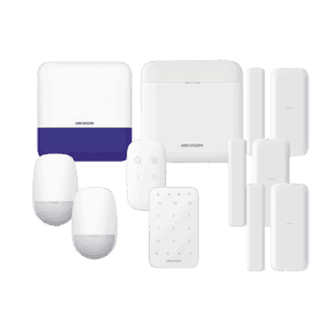 (AX PRO) KIT de Alarma AX PRO / Incluye: 1 Hub con batería de respaldo/ 2 Sensores PIR / 3 Contactos Magnéticos mini / 1 Control Remoto / 1 Sirena Inalambrica Exterior /1 Teclado Inalámbrico / WiFi / Compatible con Hik-Connect P2P